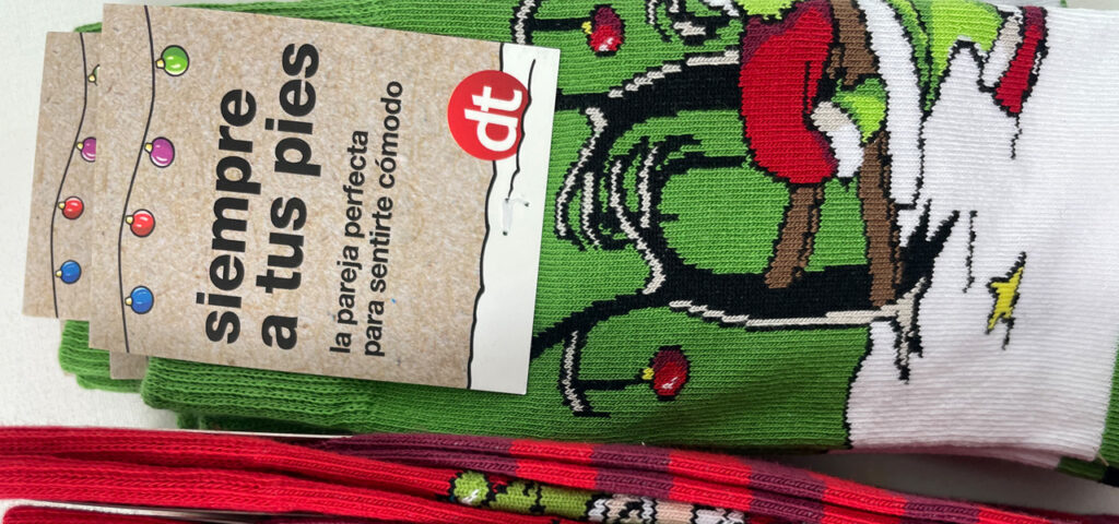 A tus pies! Este año Dt Creativos junto a Txikito nos pidio un detalle navideño para incluir en su merchandising. Desde La Central Badiola dimos forma a la idea. Creamos con sus ilustraciones únicas y tan reconocibles unos calcetines navideños con papa noel y el grinch.