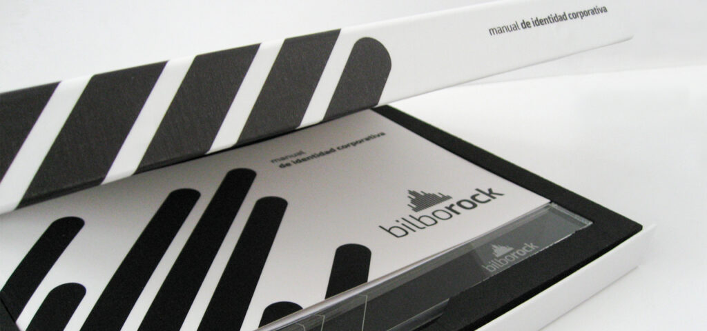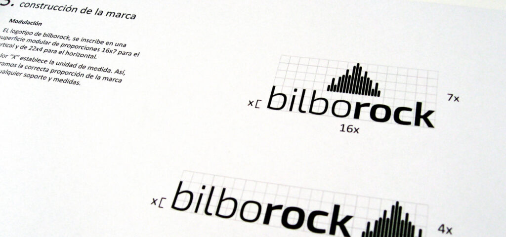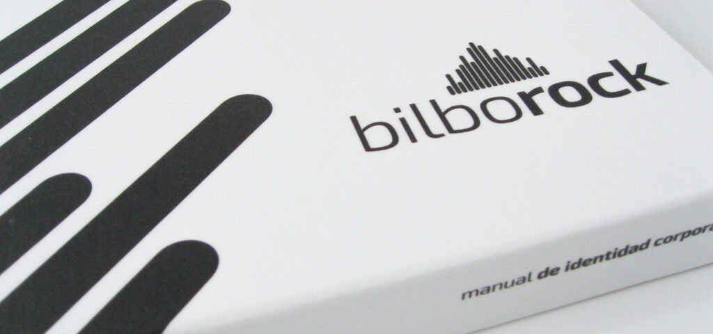 Bilborock. En La Central Badiola, creamos el manual de identidad corporativa de Bilbborock. Usando como hilo conductor las barras de la marca que asemejan los niveles de los equalizadores de volumen del sonido. Se realizaron aplicaciones para: papelería, señalética, eventos, newsletter, merchandising, etc.