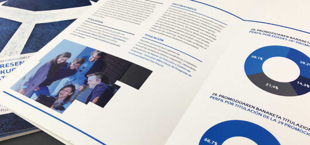 Dado que es un prestigioso Máster a nivel nacional, se quería que su imagen fuera sólida y vinculada a la UPV/EHU, universidad que lo imparte. Por eso se tomaron como base de partida para la identidad las esculturas de Chillida, ya que este famoso escultor fue el artífice del emblema de la Universidad del País Vasco. Realizado en La Central Badiola.