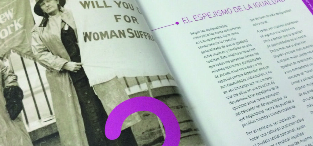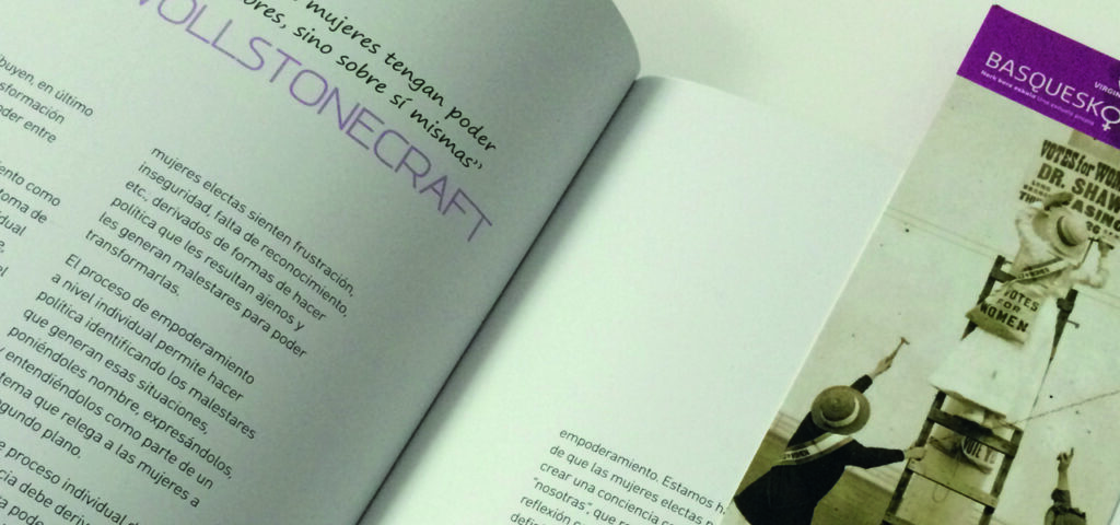Quisimos dar un toque muy personal y cuidado y para ello utilizamos fotografías antiguas de mujeres sufragistas de principios del siglo XX guardadas en la Biblioteca Nacional de Washington (EEUU). El manual tiene reservado un lugar privilegiado para frases y pensamientos de mujeres que han tenido un lugar destacado en la lucha por los derechos de las mujeres.