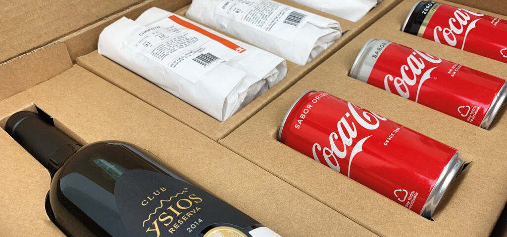 Así que incluímos el vino de rioja reserva con etiqueta personalizada, 3 clases de coca-cola y 3 tipos de pan. Haciendo un guiño a las cualidades de la empresa para adaptarse y mimetizarse con los diferentes clientes.