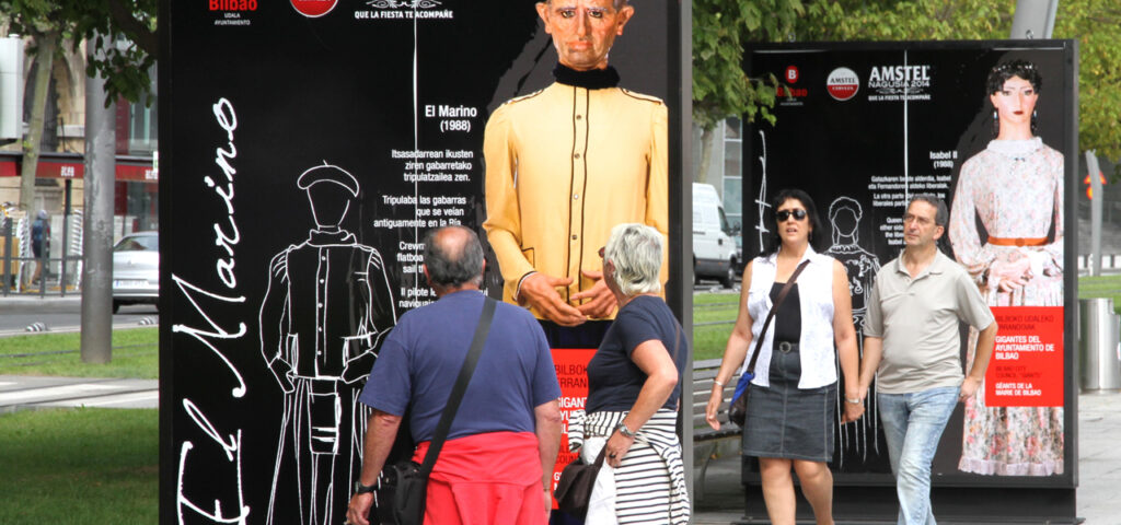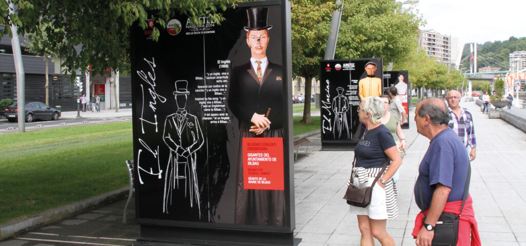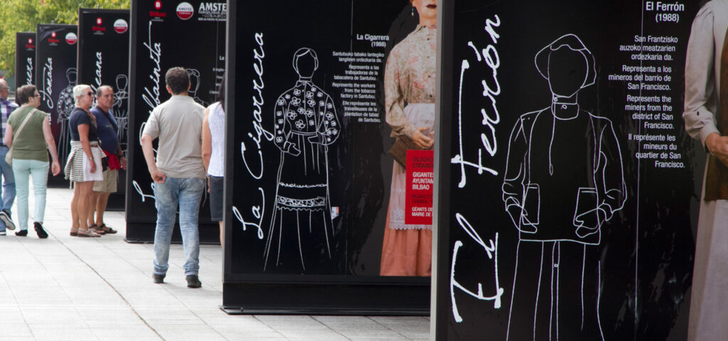 Gigantes y cabezudos. Durante la semana de fiestas de Bilbao, Aste Nagusia. El Ayuntamiento de Bilbao organiza en Abandoibarra una exposición dedicada en esta ocasión a los gigantes de la villa.