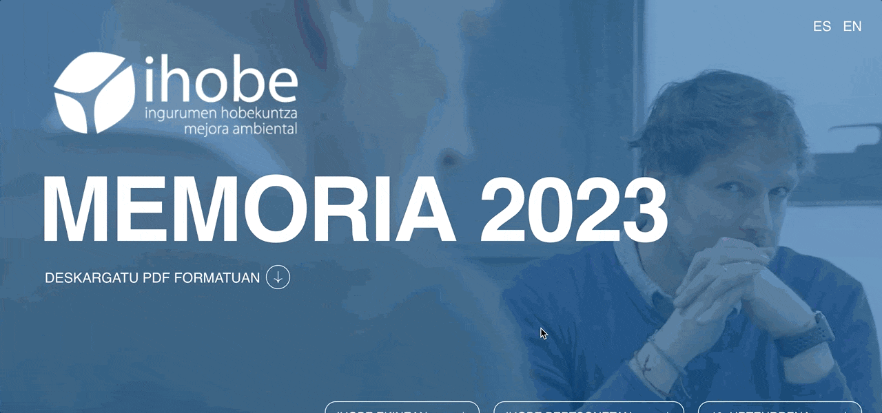 La memoria anual de Ihobe 2023 se concibió como un proyecto digital pensado para ir más allá del formato tradicional. Diseñamos y desarrollamos una web interactiva que transforma los hitos del año en una experiencia clara, accesible y visualmente atractiva.