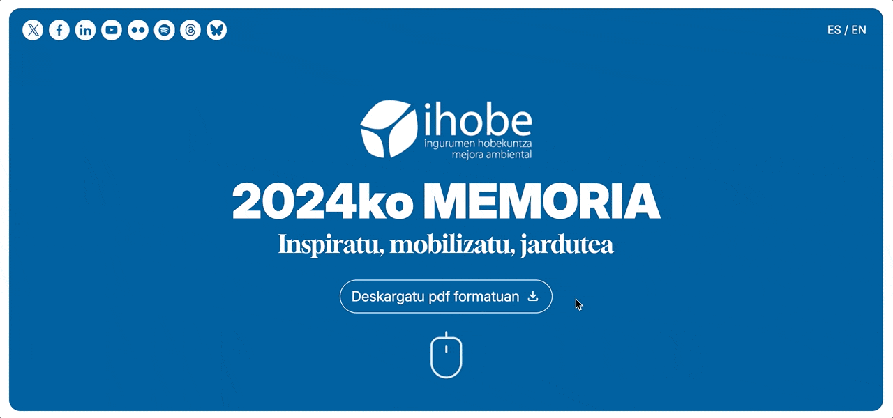 Desarrollamos ilustraciones personalizadas, una iconografía dinámica en 3D, además de transiciones y animaciones que aportan interactividad y frescura a la experiencia digital. La propuesta editorial se caracteriza por la minimización inteligente de elementos y un estilo único y a medida, reflejando fielmente la identidad de Ihobe y su compromiso con el medioambiente.