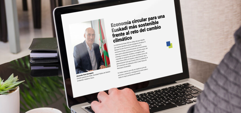 Ihobe Memoria Web. En La Central Badiola realizamos el diseño y programación de la página web de la memoria de Ihobe. Una página con un toque más actual y desenfadado en equilibrio con la elegancia y movimientos diferentes y actuales para hacerla más interactiva y moderna.