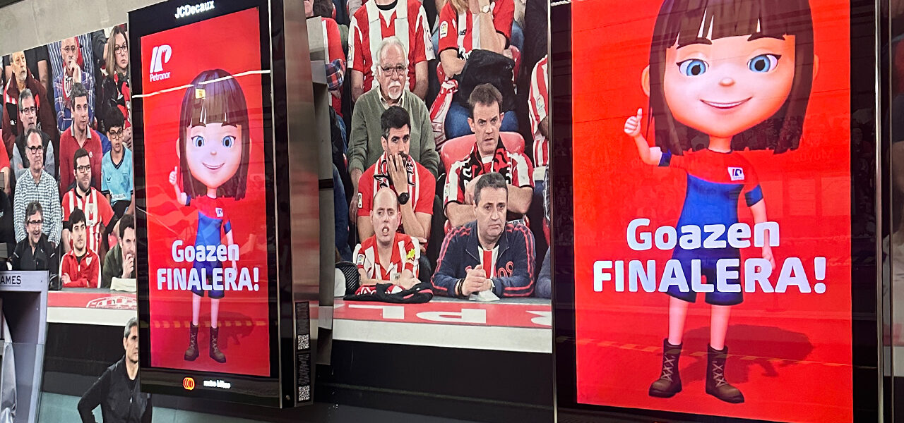 Creación de animaciones 3D especiales para ser proyectadas en los opis de los andenes del metro de Bilbao con motivo de la final de la Copa del Rey. Este proyecto tuvo como objetivo animar y emocionar a los aficionados durante sus desplazamientos, reforzando la presencia de la marca y celebrando el espíritu del equipo.